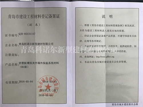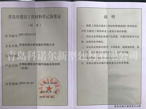 青島科諾爾新型建材有限公司主要產(chǎn)品:擠塑板( 阻燃B1級.B2級),泡沫板( 阻燃B1級.B2級)及各種造型,聚合物砂漿系列(粘結(jié)砂漿.罩面砂漿.膠粉.瓷磚粘接劑.填縫劑.界面劑),各種新型建材、保溫材料等等,公司產(chǎn)品遍銷全國各地,受到廣大用戶的一致好評。